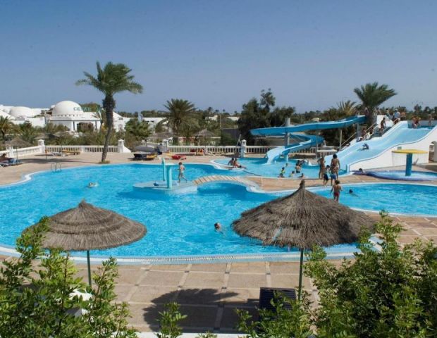 Djerba Aqua Resort 4* е реновиран през 2015 г. Цялата територия на хотела е 110 000 кв. м. Със своята традиционна, елегантна архитектура отвън и модерни съоръжения отвътре, той е приятен семеен хотел в бюджетната категория. Предлага широка гама от ресторанти, барове и забавления, за да зарадва цялото семейство. Собствен пясъчен плаж с безплатни чадъри и шезлонги;