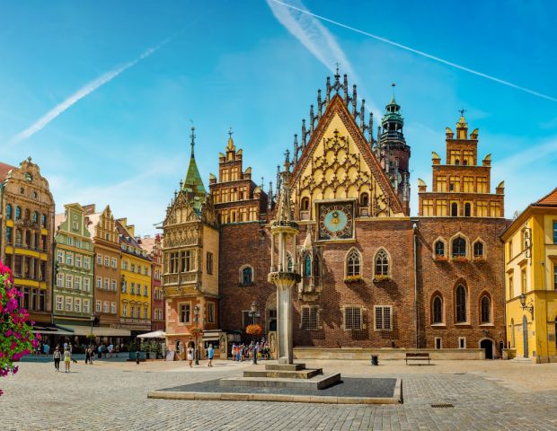Вроцлав е град, който сякаш се е родил от водата и светлината, изграден върху острови, свързани с повече от сто мостове, където реката Одра отразява небето и древните сгради като живо огледало на историята. Разходката започва от сърцето на града – Главния пазарен площад, един от най-големите в Европа, където цветовете на старинните къщи и звуците на уличните музиканти сякаш разказват стари приказки. Там се извисява Старата градска кметска сграда, готически шедьовър с внушителна кула, която предизвиква възхищение със своите детайли и романтичния си силует на фона на залязващото слънце. Малките улички около площада водят до остров Тумски, древната сърцевина на Вроцлав, където катедралата Свети Йоан Кръстител с червените си кули се оглежда във водите на Одра. Величието на катедралата, нейните готически арки и витражи създават усещането, че сте попаднали в сцена от романтична легенда, а тихите алеи около острова канят на разходка под сенките на вековни дървета, където времето сякаш спира.